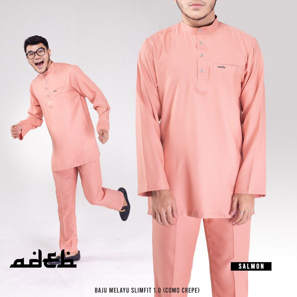 Baju Melayu Slimfit Adeb Exclusive 2021 Como Crepe Salmon Peach Shopee Malaysia